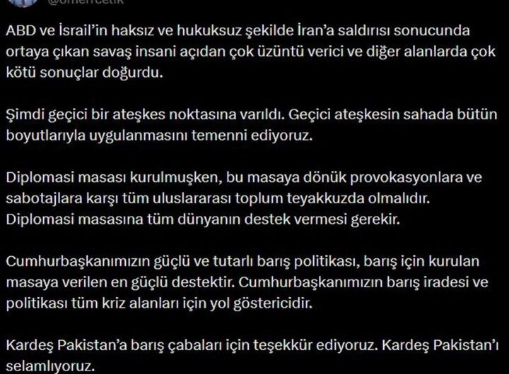AK Parti Genel Başkan Yardımcısı ve Parti Sözcüsü Ömer Çelik, geçici ateşkesin etkin bir şekilde uygulanmasını arzuladıklarını...