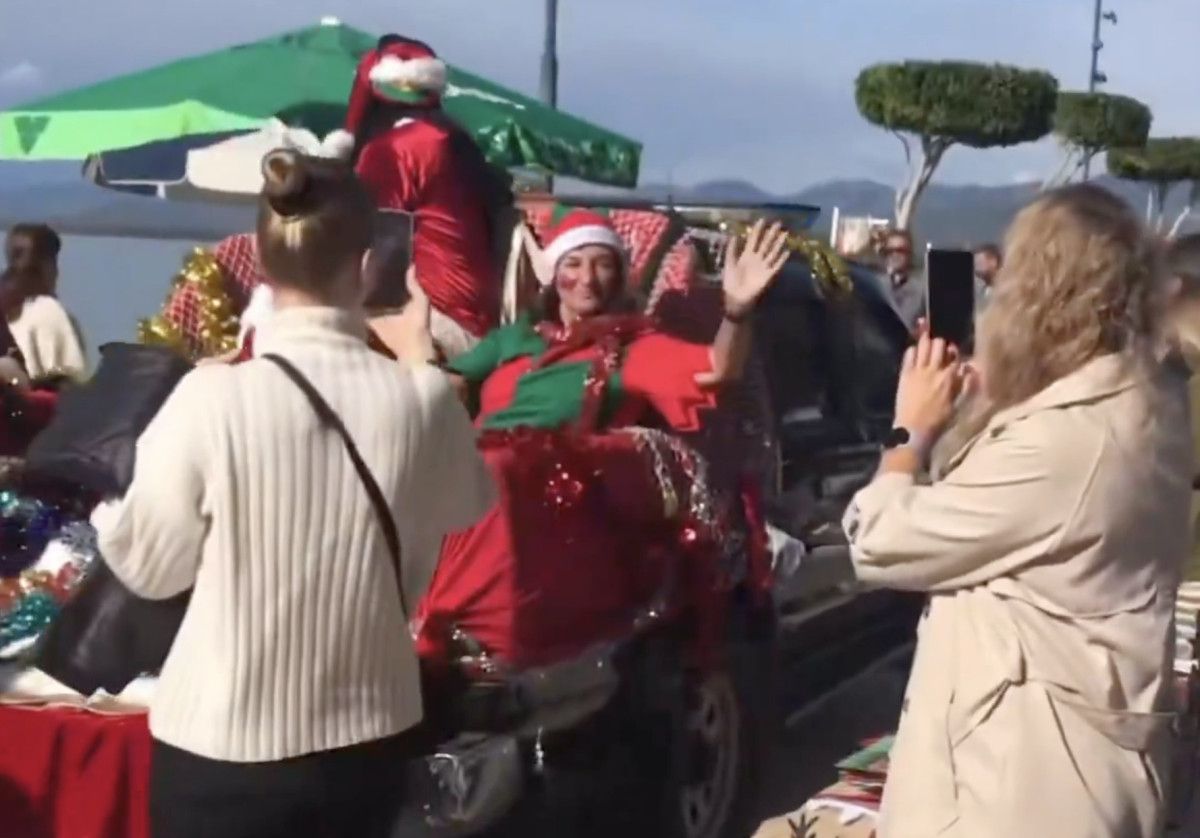 Etkinliğe ait görüntülerde kırmızı ‘Noel Baba’ kostümleri giymiş şahısların yeşil ve kırmızı süslemelerle donatılmış bir Fethiye Belediyesi’ne ait zabıta aracı görüldü.