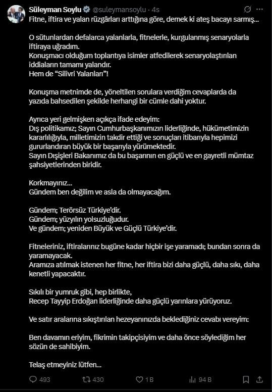 Süleyman Soylu, söz konusu iddiaları X hesabından yaptığı açıklama ile yalanladı.