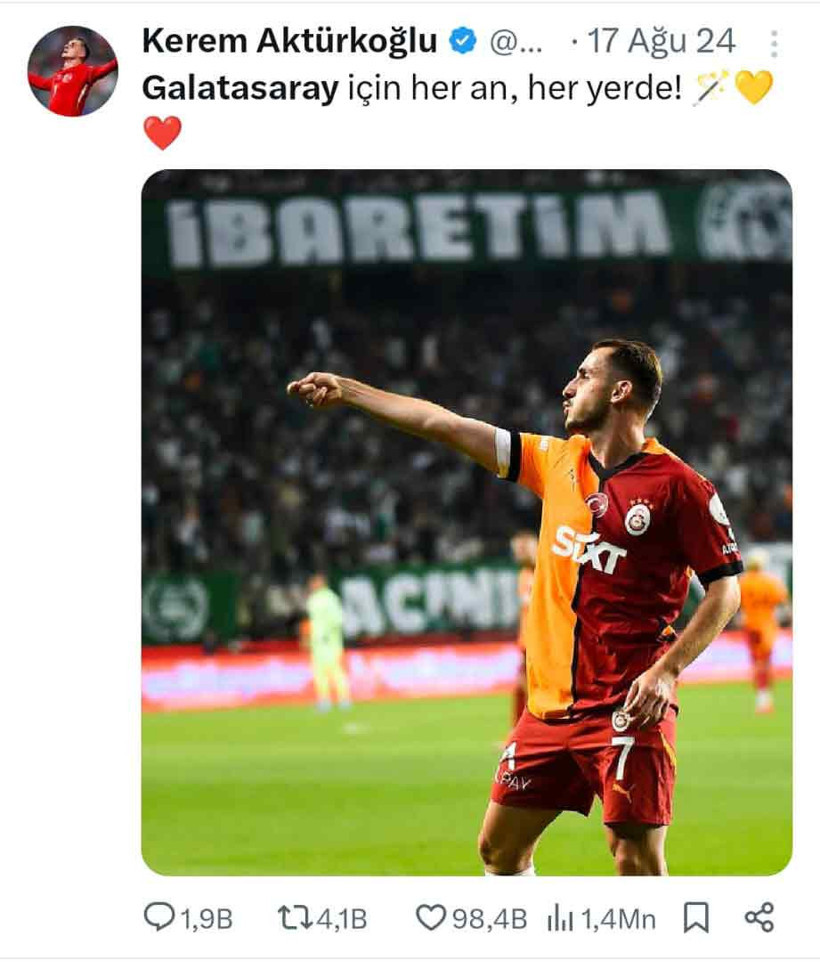 2020-2024 yılları arasında Galatasaray forması giyen, takımda kaptanlığa kadar yükselen milli futbolcu Kerem Aktürkoğlu, Fenerbahçe’ye transfer olmak için haftalardır deyim yerindeyse gemileri yakmış vaziyette.