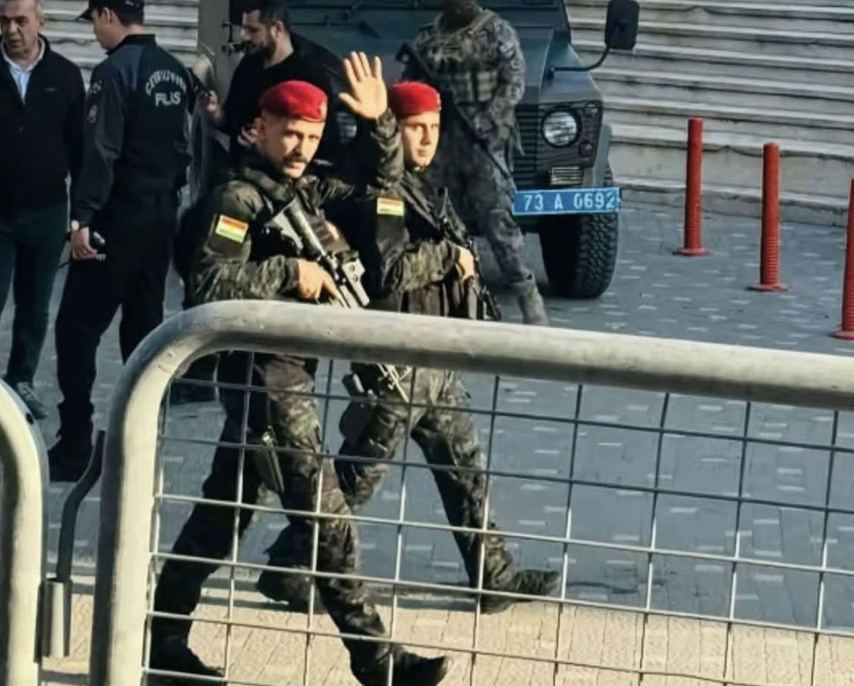 Barzani’ye burada uzun namlulu silahlarla peşmerge güçleri eşlik etti.