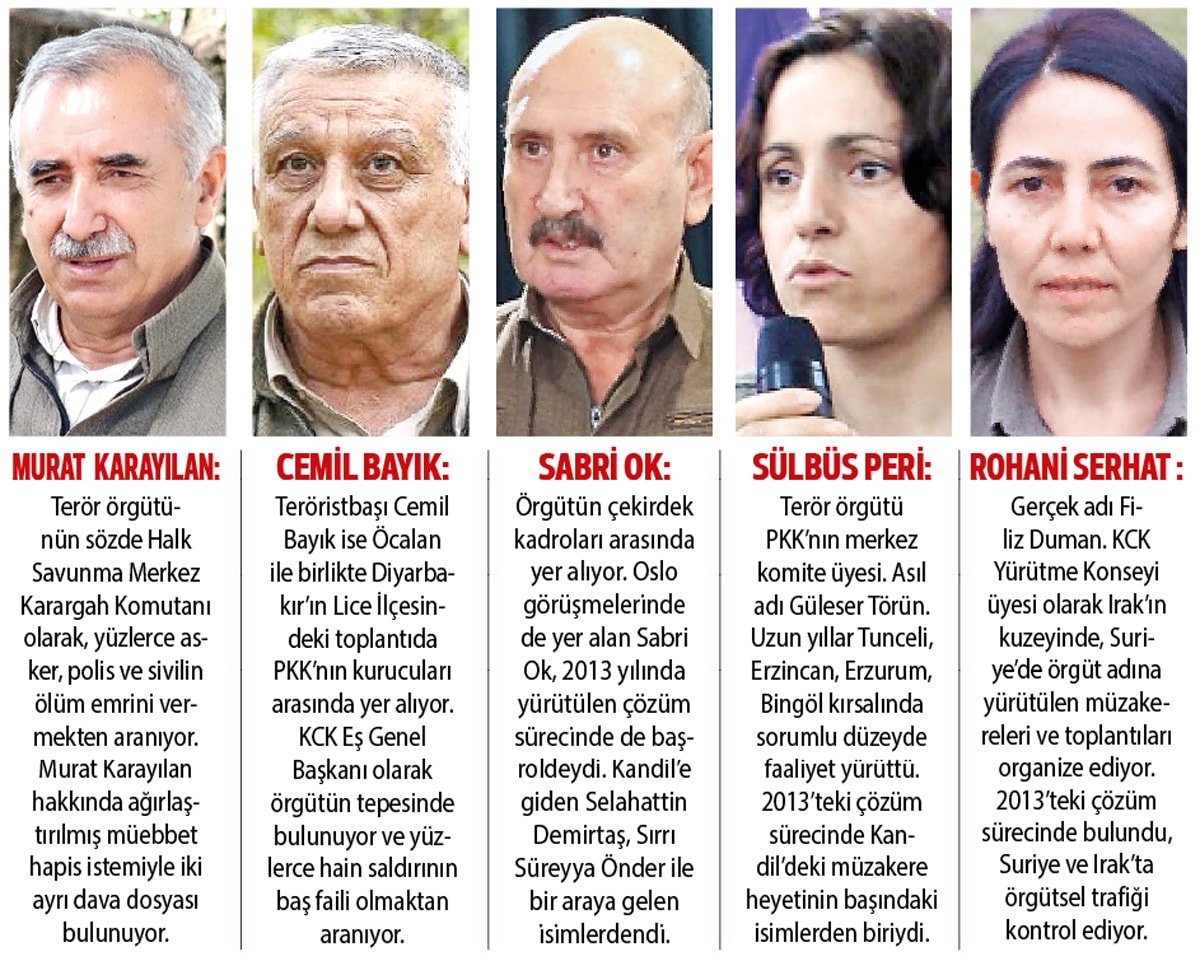 DEM’li Buldan’ın çözüm sürecinin üçüncü aşamasında Türkiye’ye gelerek siyaset yapmalarının yolunun açılmasını istediği terörist elebaşıları halen Kandil’de örgütün beyin takımını oluşturan çekirdek kadroda yer alıyorlar.